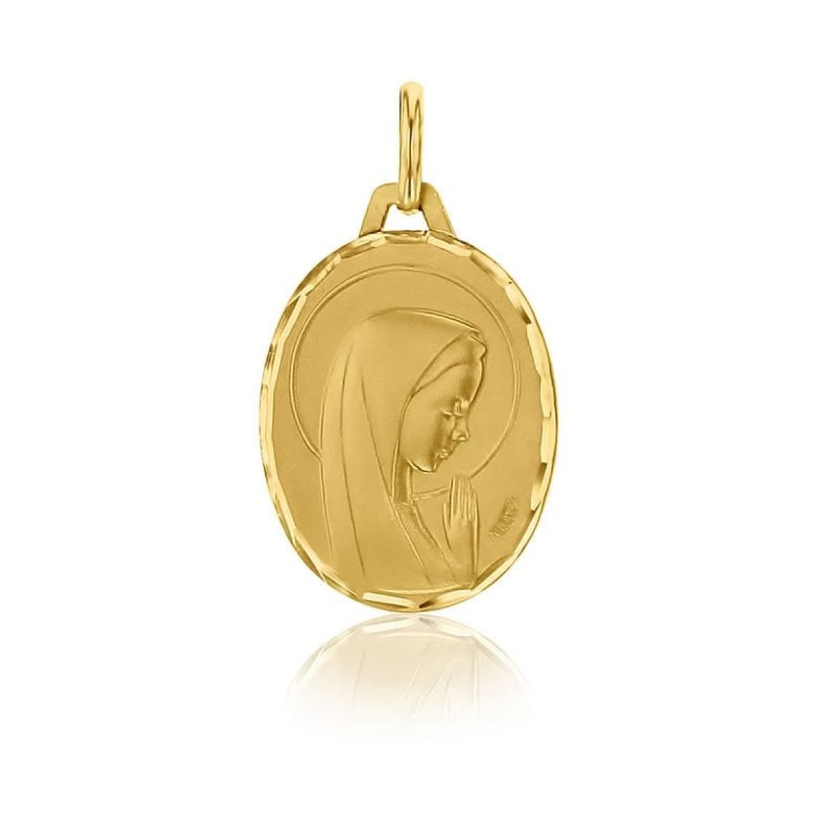 Médaille ovale de “la Vierge aux mains jointes” facettées en or jaune de 16mm.