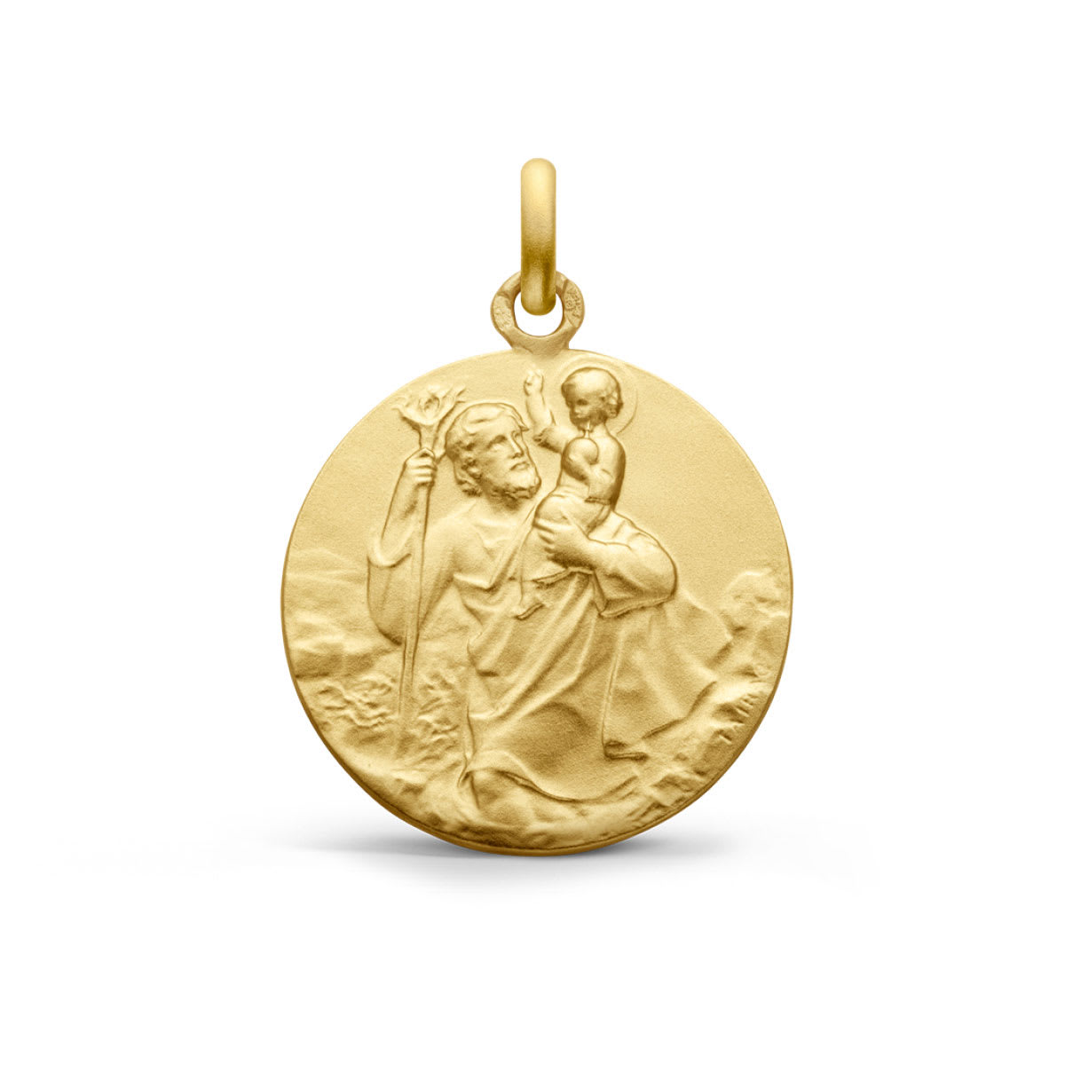 Cette médaille, en finition sablée et en frappe mince, représente le Saint Christophe de Tairac.