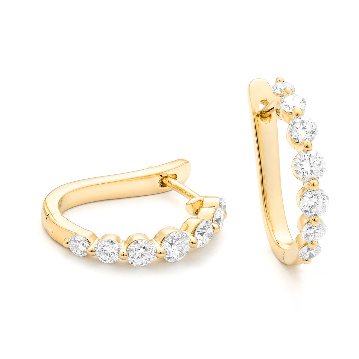 Mini créoles avec ses 7 diamants taille brillant en chute sertis 2 griffes.