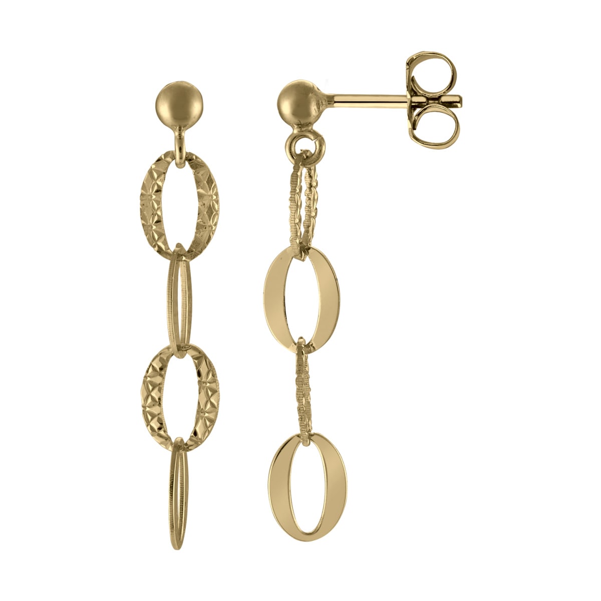 Pendants d’oreilles avec ses anneaux entrelacés en or lisse et en or ciselé
