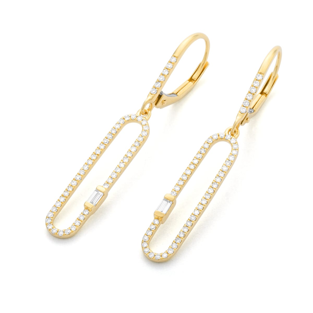 Pendants d’oreilles diamants et son diamant baguette sur or jaune