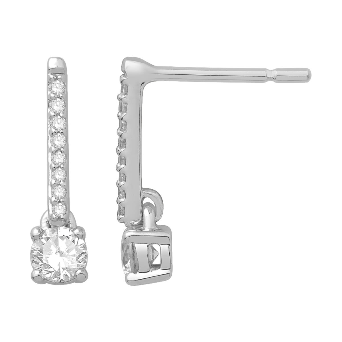 Délicats pendants d’oreilles finement pavés de diamants avec leur pampille diamant