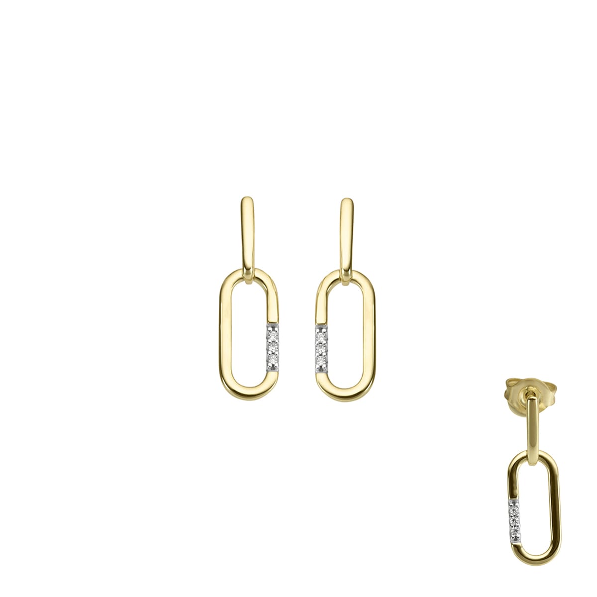 Pendants d’oreilles en or jaune avec ses 3 diamants.