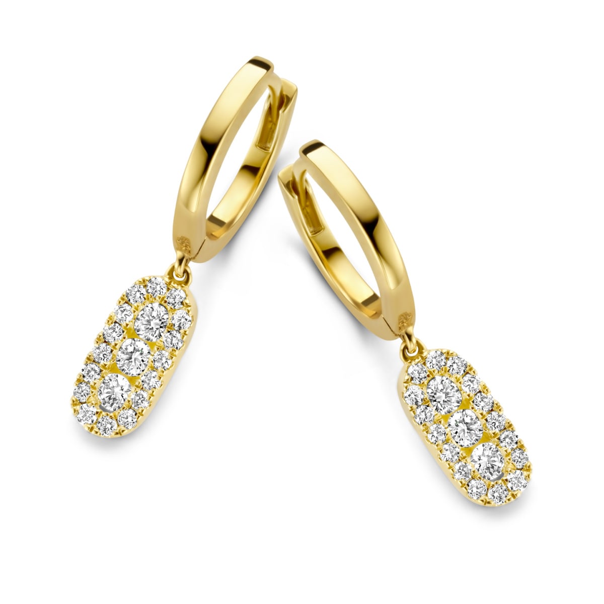 Pendants d’oreilles motif ovale pavé diamants en or jaune