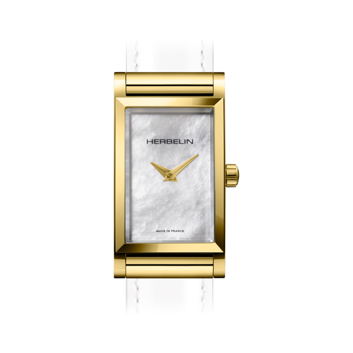 Prix de vente conseilléDe forme rectangulaire, ce boitier Antarès possède un cadran en nacre blanche véritable.