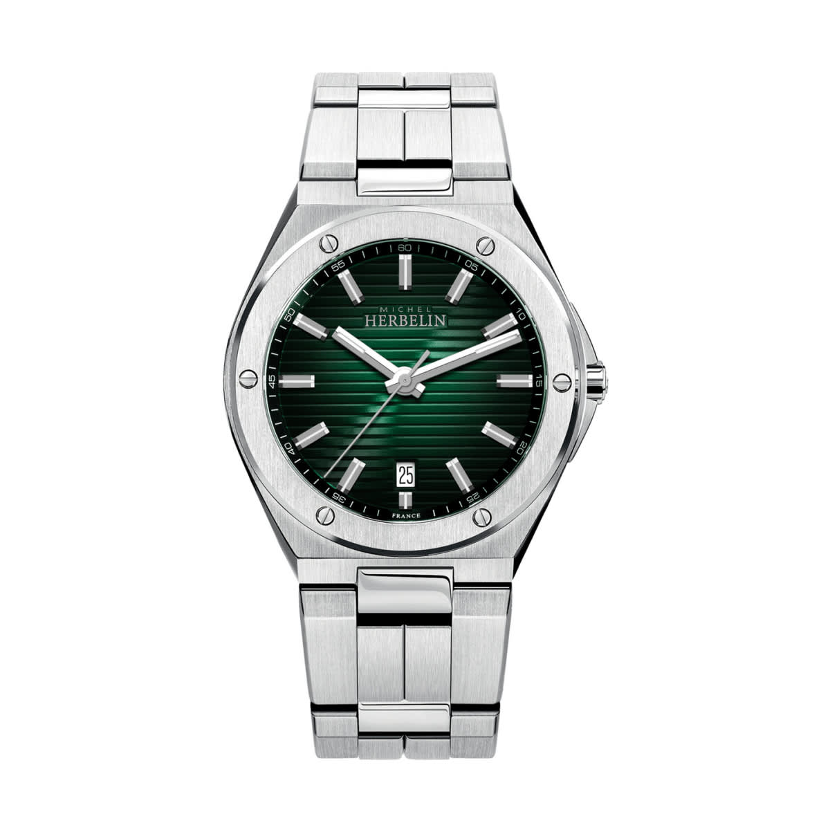 Frappé à l’horizontal, le cadran vert apporte une touche d’élégance et de modernité. Les aiguilles et les index en acier inoxydable réfléchisse la lumière. Depuis 1947, Herbelin signe toute ses collections à Charquemont grâce à un savoir-faire français unique.
