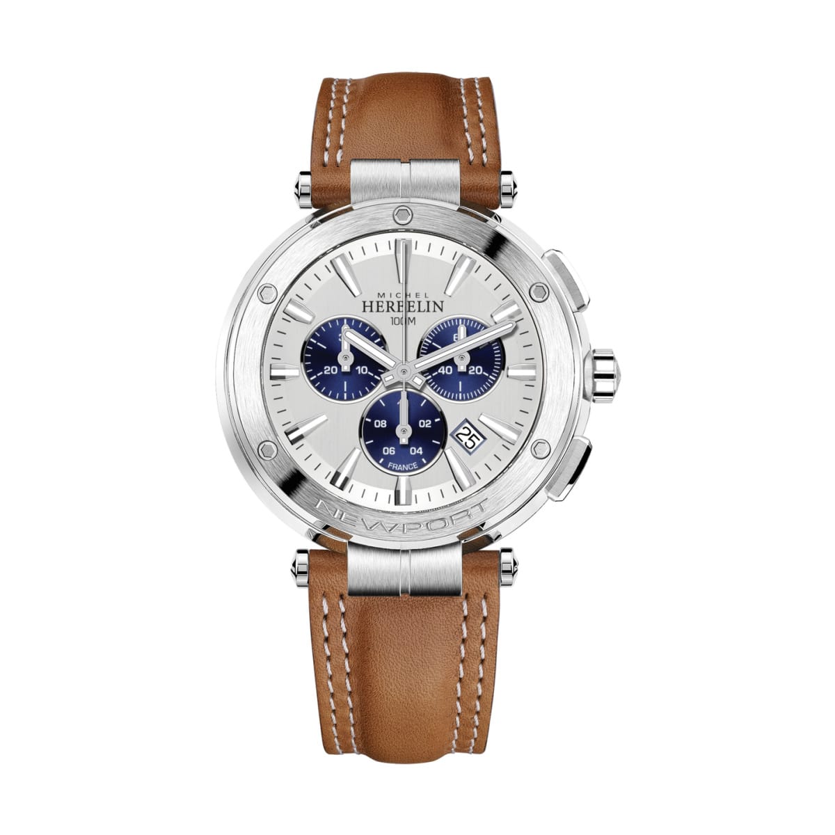 Munie d’un boîtier en acier, son cadran argent brossé est marqué par trois compteurs bleus évoquant les tons de la mer méditerranée. Cette Newport est habillée d’un bracelet en cuir gold apportant une note d’élégance à cette montre sportive. La roue marine gravée sur fond illustre parfaitement le souci du détail propre à HERBELIN. Cette montre habille avec style les poignets masculins.