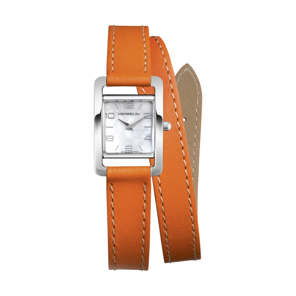 Montre Herbelin Ve AVENUE – BRACELET DOUBLE – CUIR ORANGE & NACRE