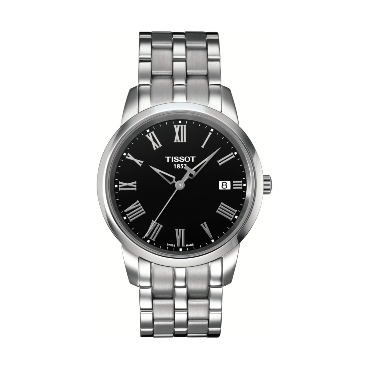 La montre Tissot Classic Dream est très élégante avec ses chiffres romains, ses fines aiguilles et son cadran noir. Etanche jusqu’à une pression de 3 bar (30 m/100 ft) - Bracelet tout en acier - Boucle déployante avec boutons poussoirs - Verre saphir - Garantie 2 ans
