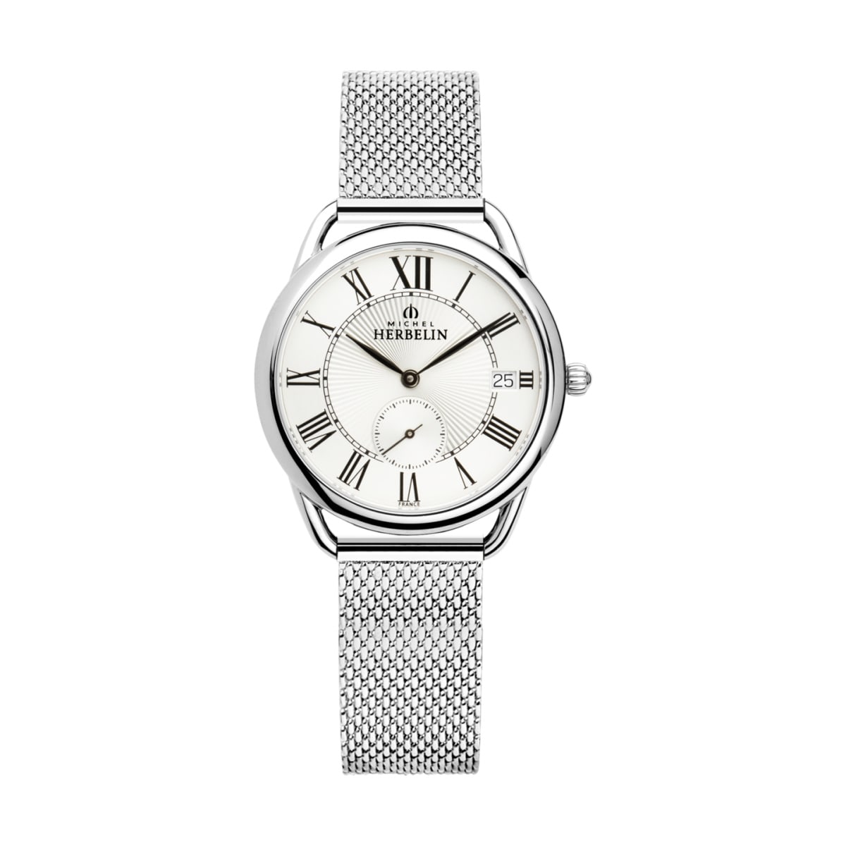 Un total look acier pour cette montre Michel HERBELIN. Dotée d’un bracelet en mailles milanaises et un boîtier en acier, elle habille avec élégance les poignets féminins.